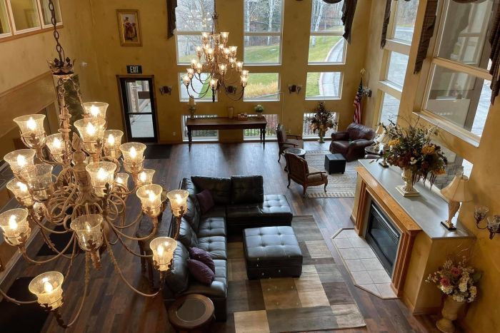 The Rising Ridge property was designed with the client's comfort in mind. The beautiful chalet offers spacious accommodations, calming designs, and a gorgeous view of the nearby mountains. Clients can enjoy private and semi-private bedrooms with plush linens and warm lighting. On site, clients can use a full spa complete with hydrotherapy, a steam room, a dry sauna, and a spa for massage, facials, and more. A state-of-the-art gym is also available along with a large game room. In addition, gourmet meals are provided by in-house chef.