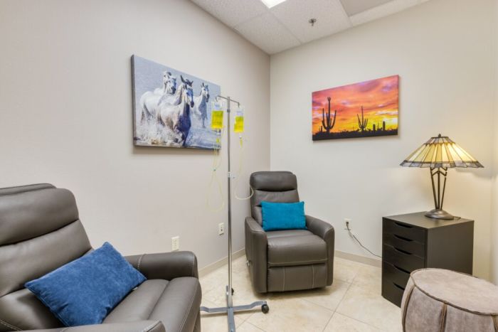 Scottsdale Detox is a sister facility to Pinnacle Peak Recovery, located just minutes outside Phoenix, Arizona. Scottsdale Detox understands that the path to recovery for most people who are struggling with substance abuse, addiction, and chemical dependency must begin with a medical detox. Scottsdale Detox is staffed with doctors and nurses who have been trained in detoxification and understand that without medical care, some of the withdrawal symptoms can be unpleasant, dangerous, and even life threatening. Scottsdale Detox allows their clients to have access to cell phones,laptops, and even offer a 24 hour smoking area. Scottsdale Detox’s additional services include an IV therapy to help patients through the detoxification process. They tailor all treatment plans to each individual and can manage most co-existing medical conditions during their stay. A typical detox can range from 3-7 days, however some can take longer, such as medication assisted treatment with Methadone. All of the patients at Scottsdale Detox have a private room and bathroom, and they also offer two executive suites which include recliners, larger beds, full length desk, and a mini refrigerator. Scottsdale Detox accepts most major Insurances and has private pay rates that are competitive. They are accredited by the Joint Commission.